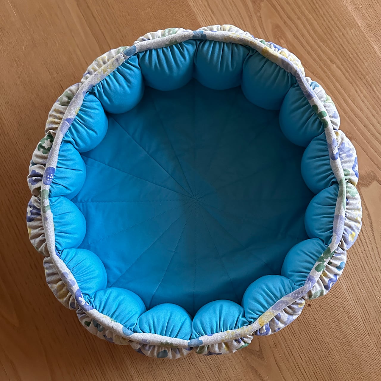 新・洗える丸ベッド(フラワーバード柄 ブルー)