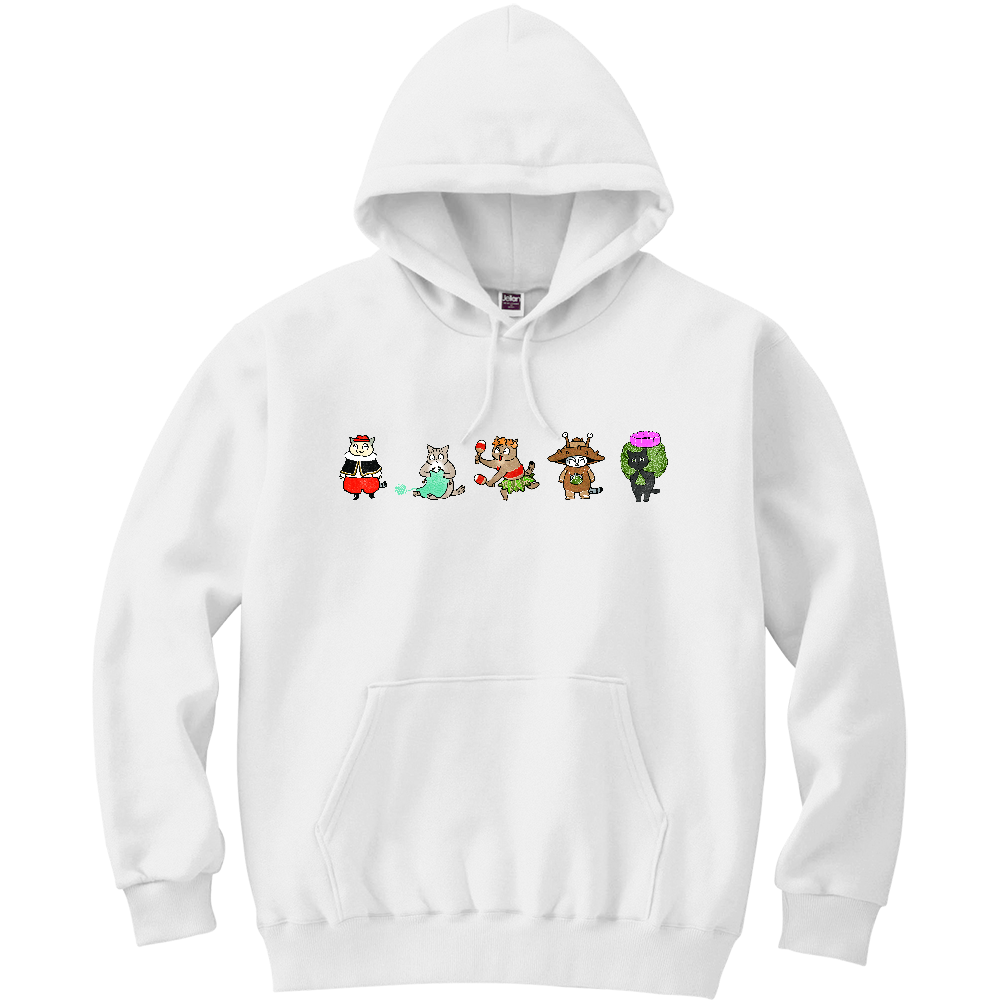 胸元に猫間商事ロゴを配した、シンプルなデザインとフォルムに仕上げられた定番プルパーカーです。